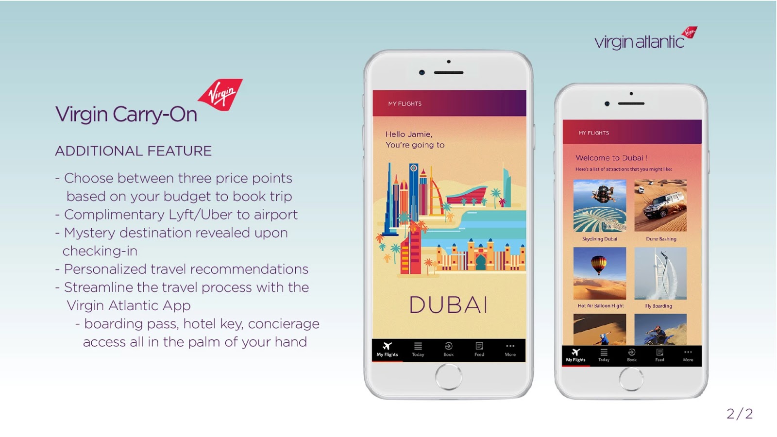 Virgin Atlantic airlines is looking to inspire people to be more spontaneous by creating a new sub-brand that adds both flight and hotel booking with the touch of a button. Introducing, Virgin Carry-On, a unique flight and hotel booking experience where your final destination is a surprise.